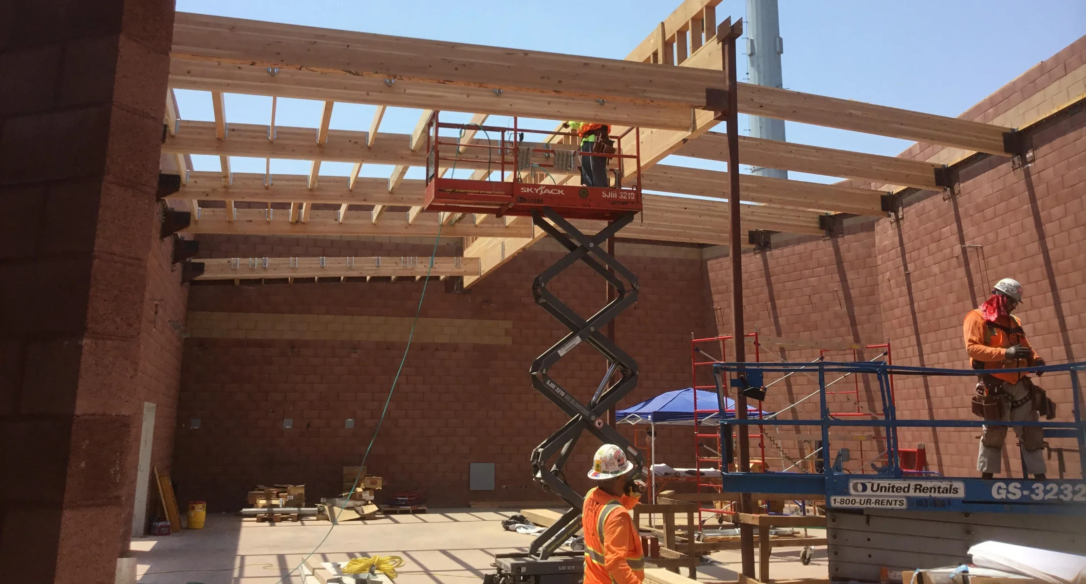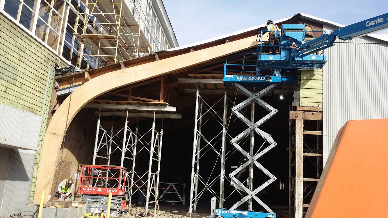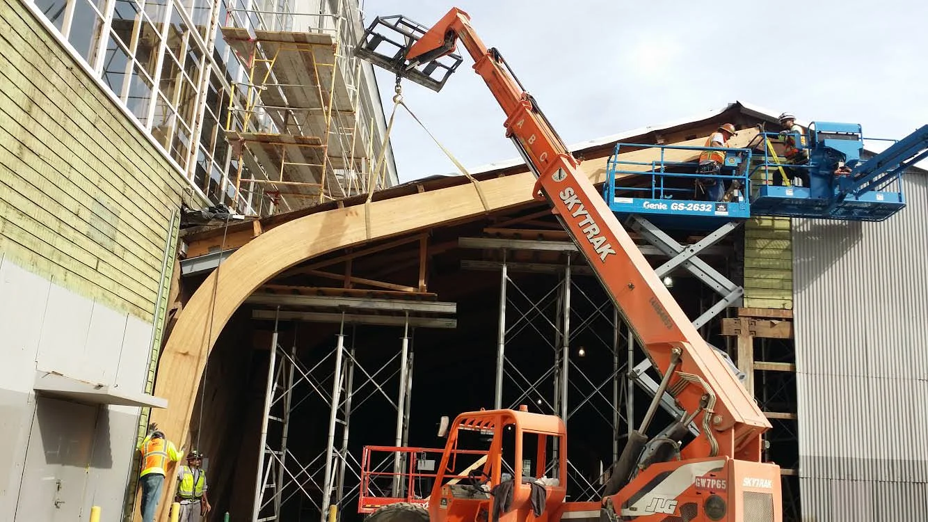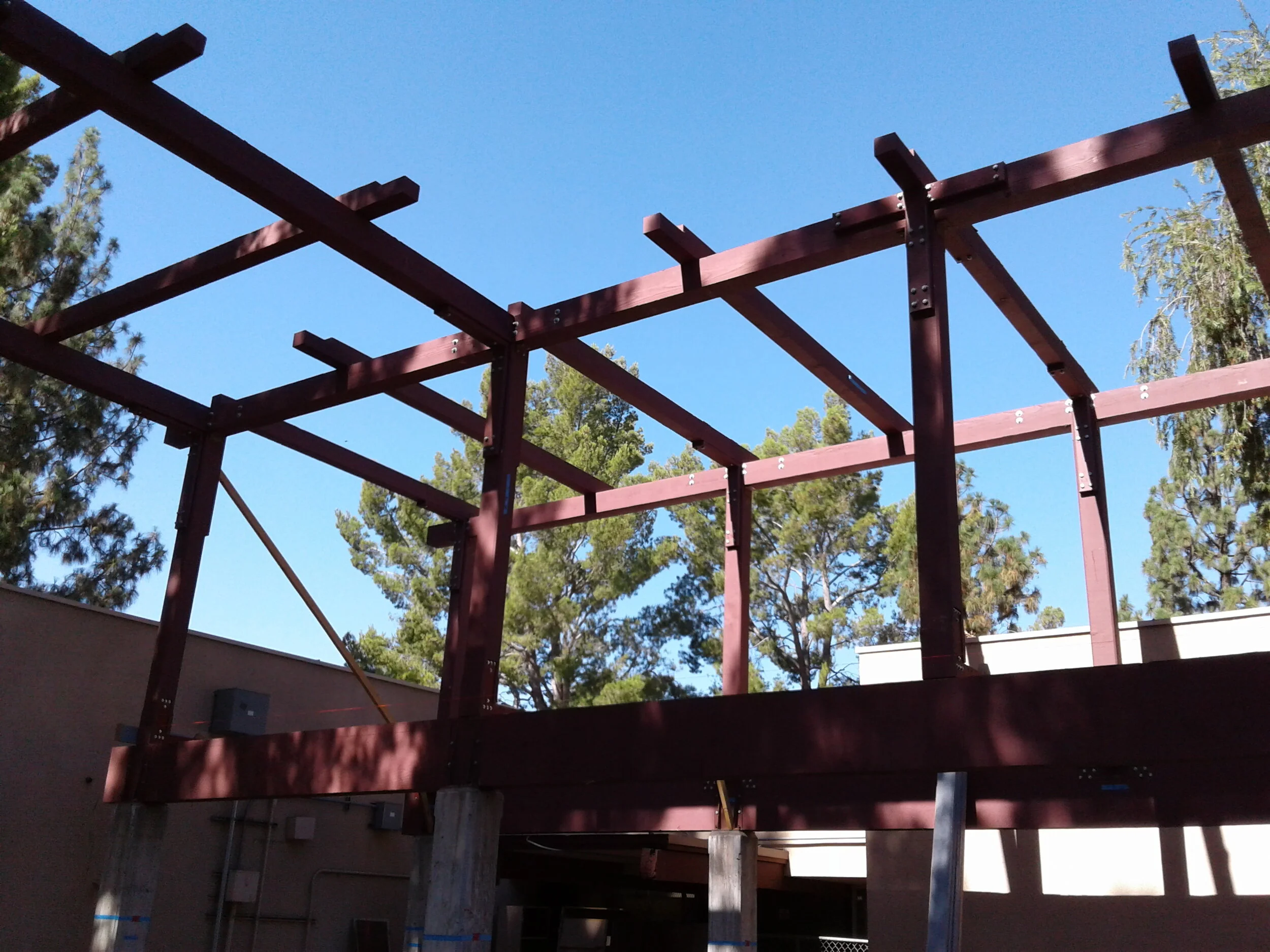 Large timber projects using glulam beams and cross-laminated timber have been a specialty of our for many years, we take pride in our quality and ingenuity for erecting these large structures. In all cases, we built the trusses that you will view on our website. Cross-laminated timber (CLT) is a new timber product making its way into southern California. We think it is the future of wood construction, ask us about CLT.